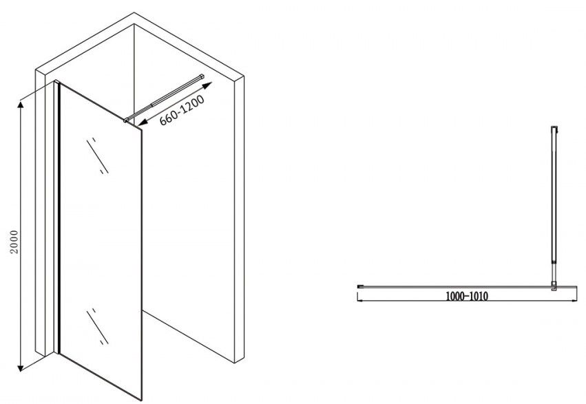 Душевая перегородка ABBER Immer Offen 120см чёрный AG61120B8
