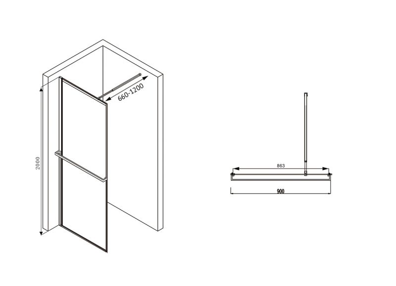 Душевая перегородка ABBER Immer Offen 90см AG60090B