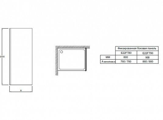 Душевая перегородка для ванны Jacob Delafon CONTRA E22FT90-GA 90*200