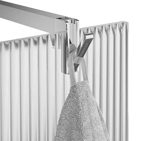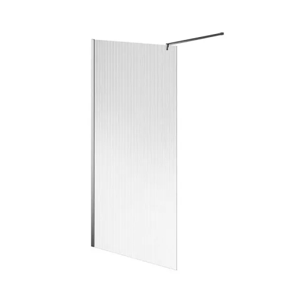 Перегородка предназначена для создания открытой душевой зоны walk-in. Высота 210 см обеспечивает надёжную защиту пространства ванной от брызг. В конструкции впервые предложено эксклюзивное рифлёное стекло, отличающееся кристальной прозрачностью и делающее душевую зону по-настоящему неповторимой. В дизайне душевого ограждения учтены важные мелочи. Так, верхний хромированный держатель оканчивается элегантным крючком, на который можно повесить полотенце.