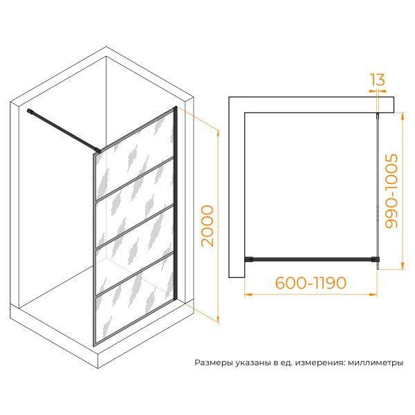 Душевая перегородка WA-019B — идеальное решение для создания стильного и функционального пространства в ванной комнате. С общей высотой 2000 мм, она надежно защищает от разбрызгивания воды за пределы душевой зоны. Перегородка оснащена прозрачным закаленным стеклом толщиной 8 мм, которое не только визуально расширяет пространство, но и придает современный и элегантный вид. Благодаря своей прочности, закаленное стекло обеспечивает высокий уровень безопасности и долговечности, что делает перегородку идеальным выбором для использования в ванной комнате. Профиль, выполненный из анодированного алюминия ALUSTRONG MAX, гарантирует долговечность и устойчивость к коррозии. Черная керамическая краска, нанесенная методом шелкографии. Стильный рисунок: горизонтальные линии и по периметру стекла, добавляет изысканный акцент и современный вид. 3 класс герметичности гарантирует, что вода останется там, где она должна быть, сводя к минимуму риск любого повреждения водой пола в ванной комнате.Универсальный монтаж позволяет легко и гибко установить перегородку в любой планировке ванной комнаты. Дополнительное покрытие стекла с эффектом анти-капля Easy Clean облегчает уход за перегородкой и сохраняет её чистоту. С ресурсом эксплуатации в 15 лет и гарантией 3 года, душевая перегородка WA-019B — надежный выбор для вашего душевого пространства!