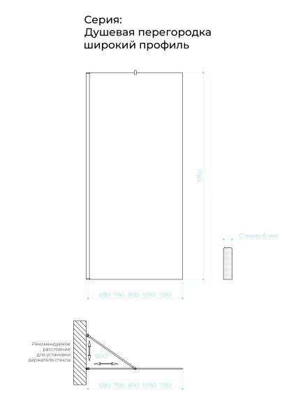 Закаленное стекло , цвет бесцветный , толщина 8 мм , 1950*690-1 шт.