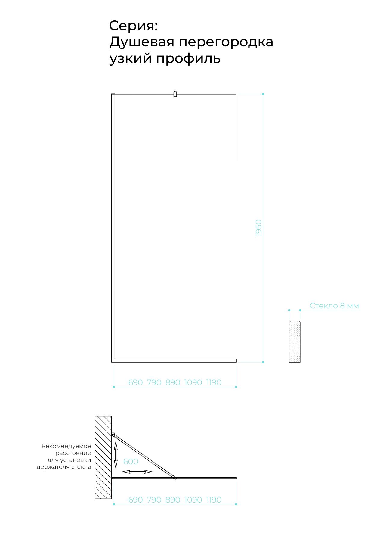 Душевая перегородка в профиле by Deonria P-195-79-8-T-HM 79см хром матовый/прозрачный купить