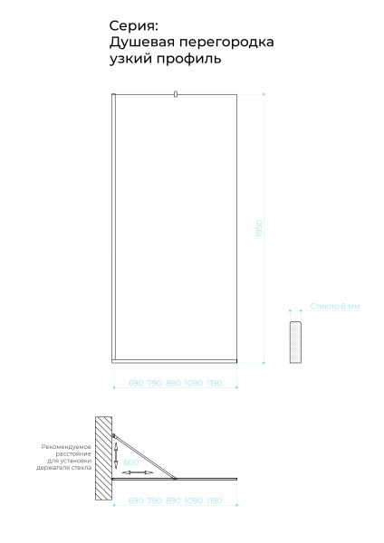 Душевая перегородка в профиле by Deonria P-195-89–8-T-B 89см чёрный/прозрачный купить