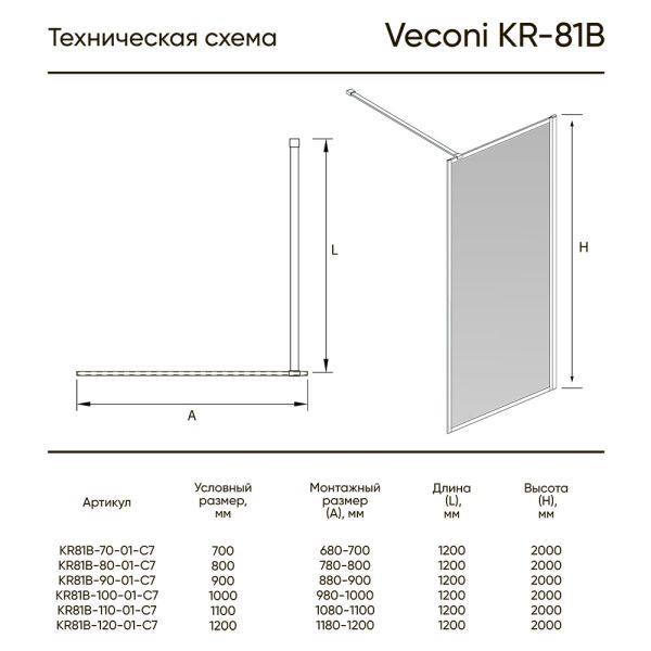 Душевая перегородка Veconi Korato KR-81, 800x2000, хром, стекло прозрачное купить