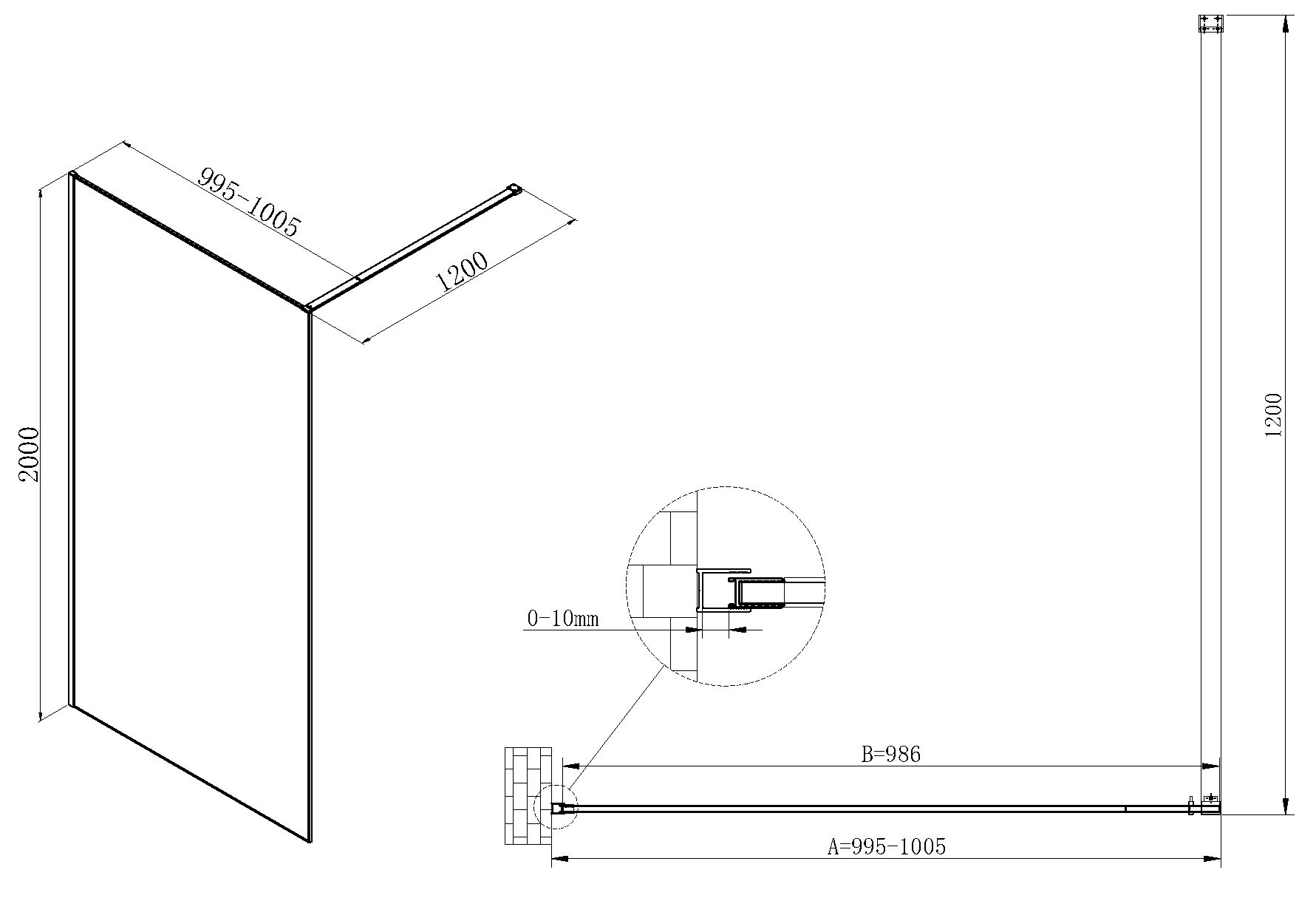 Душевая перегородка Vincea Walk-In VSW-7HS100GWG, 1000*2000, брашированное золото, стекло с золотыми нитями