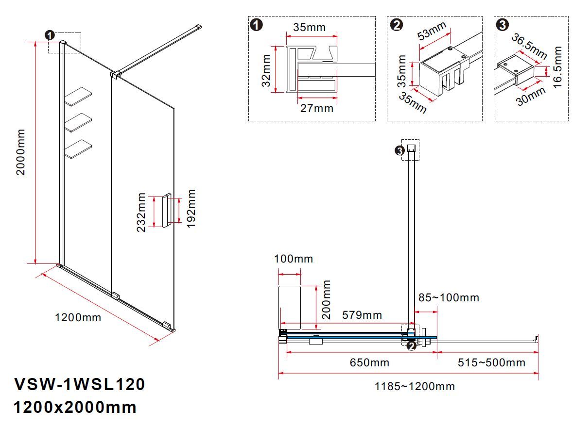 Душевая перегородка Vincea Walk-In VSW-1WSL120CLB, 1200*2000, черный матовый, стекло прозрачное