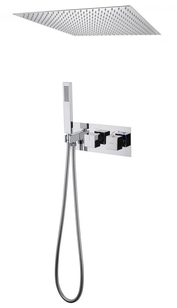 Душевой комплект ABBER отлично дополнит ванную комнату своим незаменимым функционалом. Душевые комплекты ABBER включают в себя все необходимое для создания идеального душевого пространства. Душевой комплект ABBER производится из высококачественных материалов, с отсутствием вредных примесей. Основной цвет исполнения ABBER – хром, идеально подходящий к душевой зоне выполненной в стиле hi-tech. Душевой комплект ABBER правильное решение в оснащении ванной комнаты.Душевая система скрытого монтажа без излива, термостат, хром