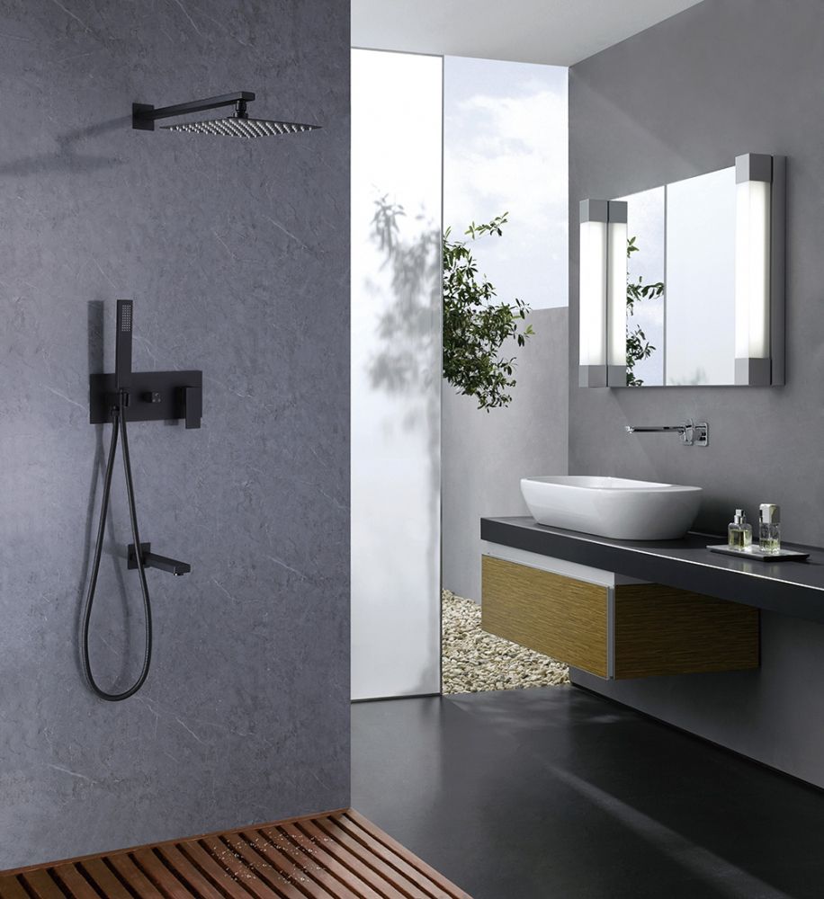 Душевой комплект ABBER роскошно дополнит вашу ванную комнату своим незаменимым функционалом. Душевые комплекты ABBER включают в себя все необходимое для создания идеального душевого пространства. Душевой комплект ABBER производится из высококачественных материалов, с отсутствием вредных примесей. Основной цвет исполнения ABBER – хром, черный матовый, матовое золото идеально подходящий к душевой зоне выполненной в стиле hi-tech. Душевой комплект ABBER правильное решение в оснащении ванной комнаты.
