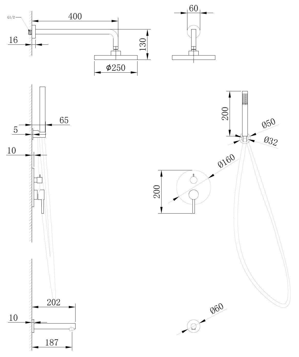• Размер верхнего душа, см: