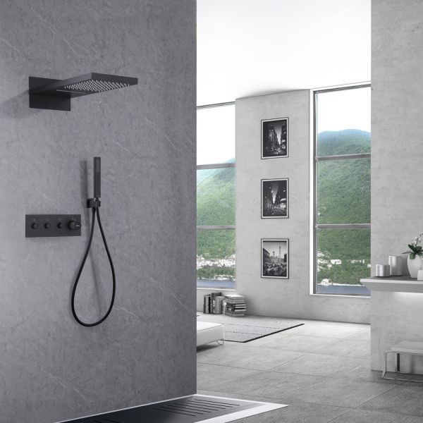 Душевая система ABBER Rund AF8752B с термостатом чёрный матовый