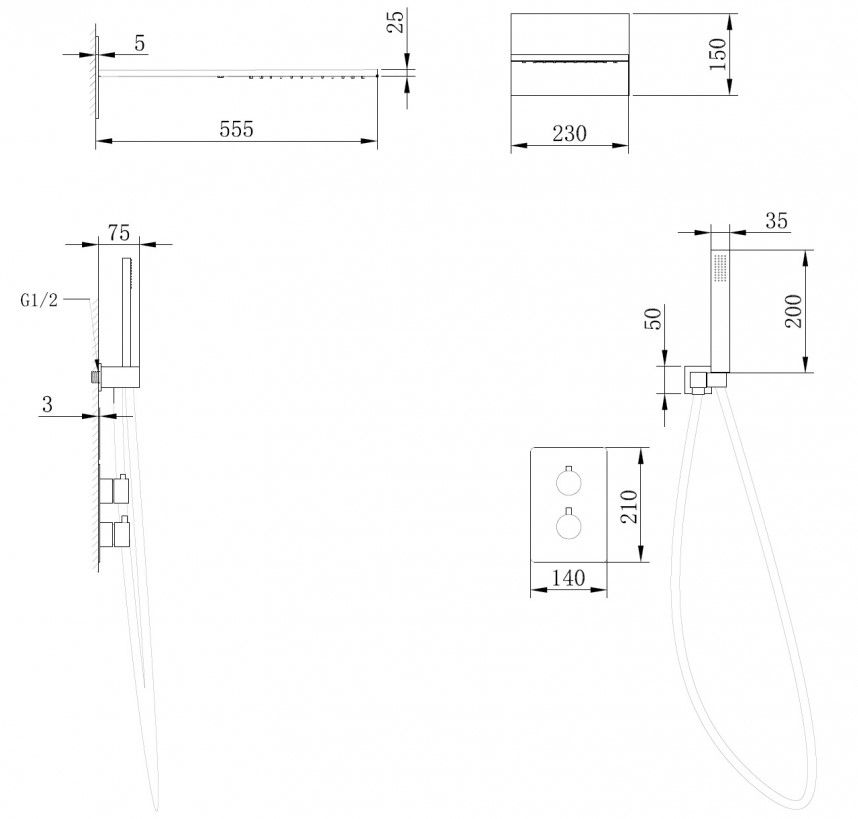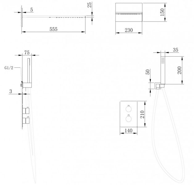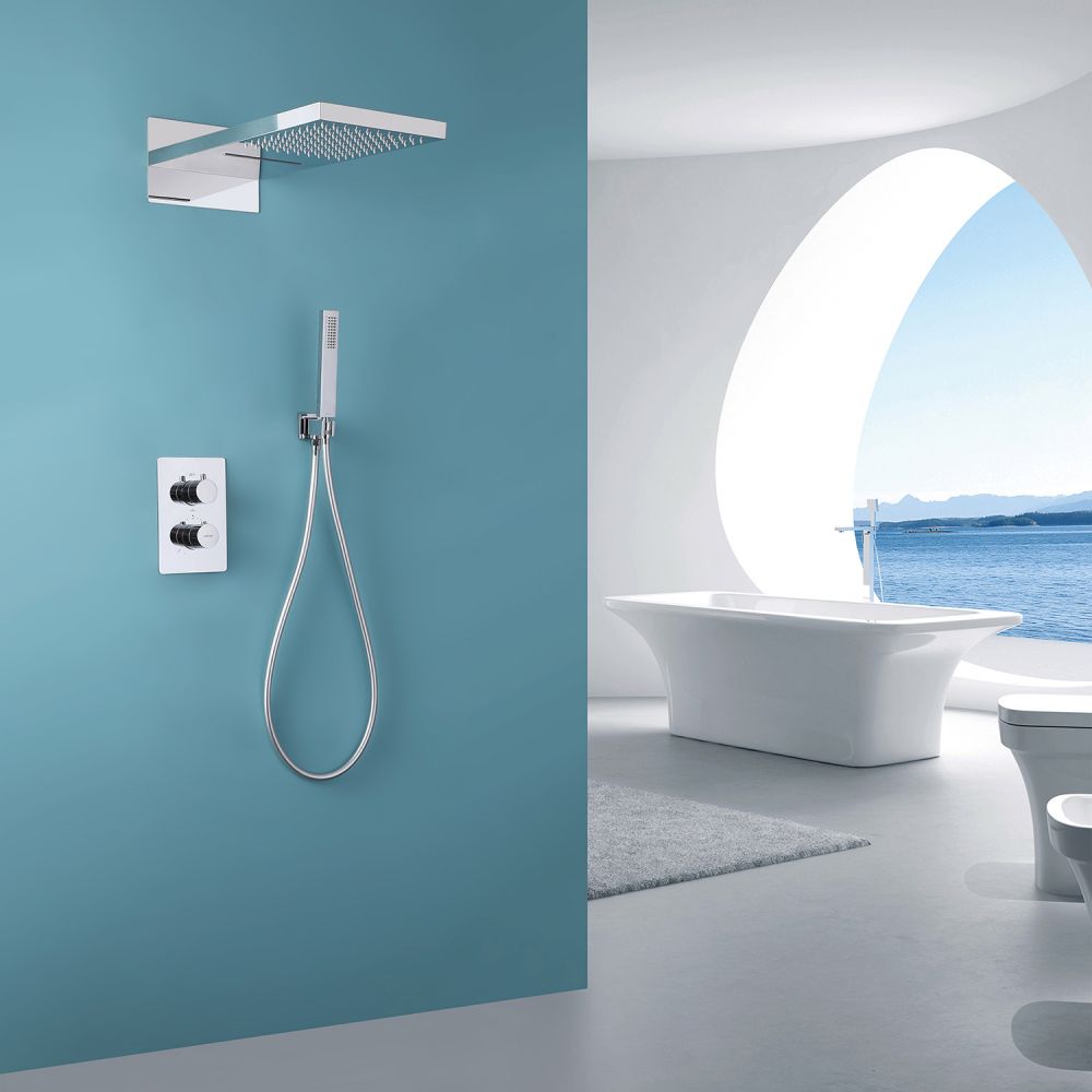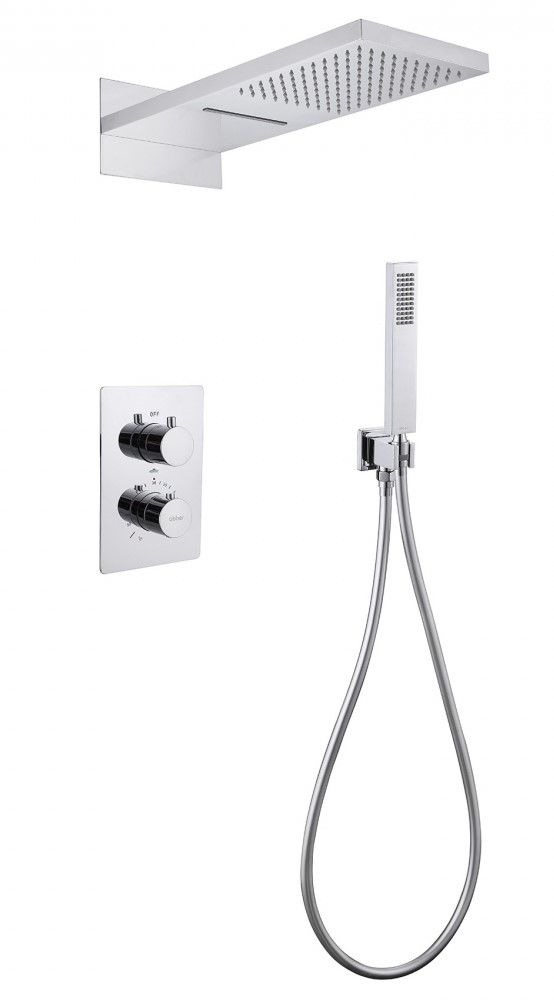 Душевой комплект ABBER отлично дополнит ванную комнату своим незаменимым функционалом. Душевые комплекты ABBER включают в себя все необходимое для создания идеального душевого пространства. Душевой комплект ABBER производится из высококачественных материалов, с отсутствием вредных примесей. Душевой комплект ABBER правильное решение в оснащении ванной комнаты.Душевая система скрытого монтажа без излива, термостат, хром