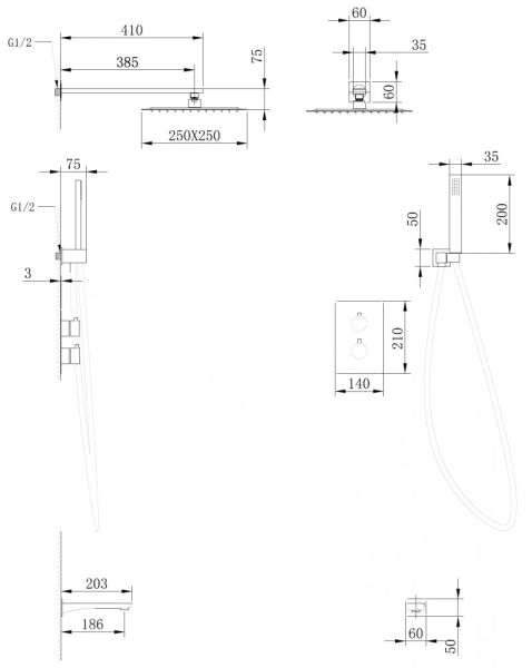Душевая система ABBER Weiss Insel с термостатом чёрный матовый AF8050B