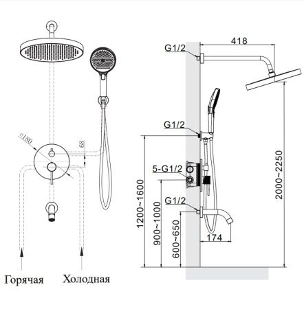 Душевая система AltroBagno Bilancia 040502 GrMt купить