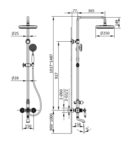 • Размер ручного душа, см: