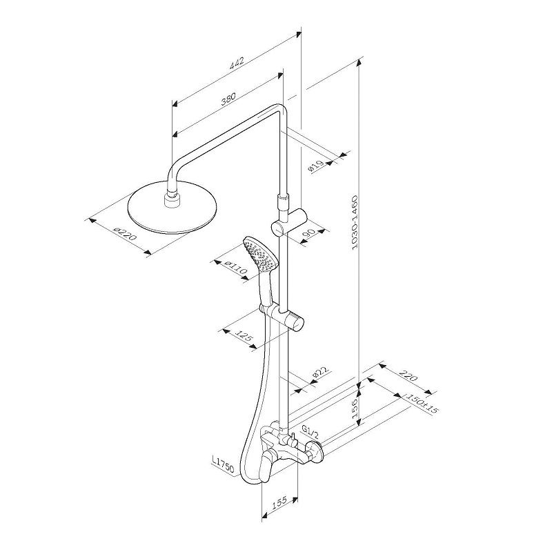 Вылет верхнего душа: 44.2 см