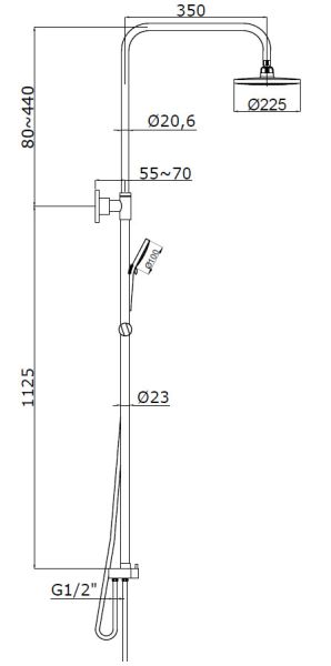 Размер верхнего душа, см:225