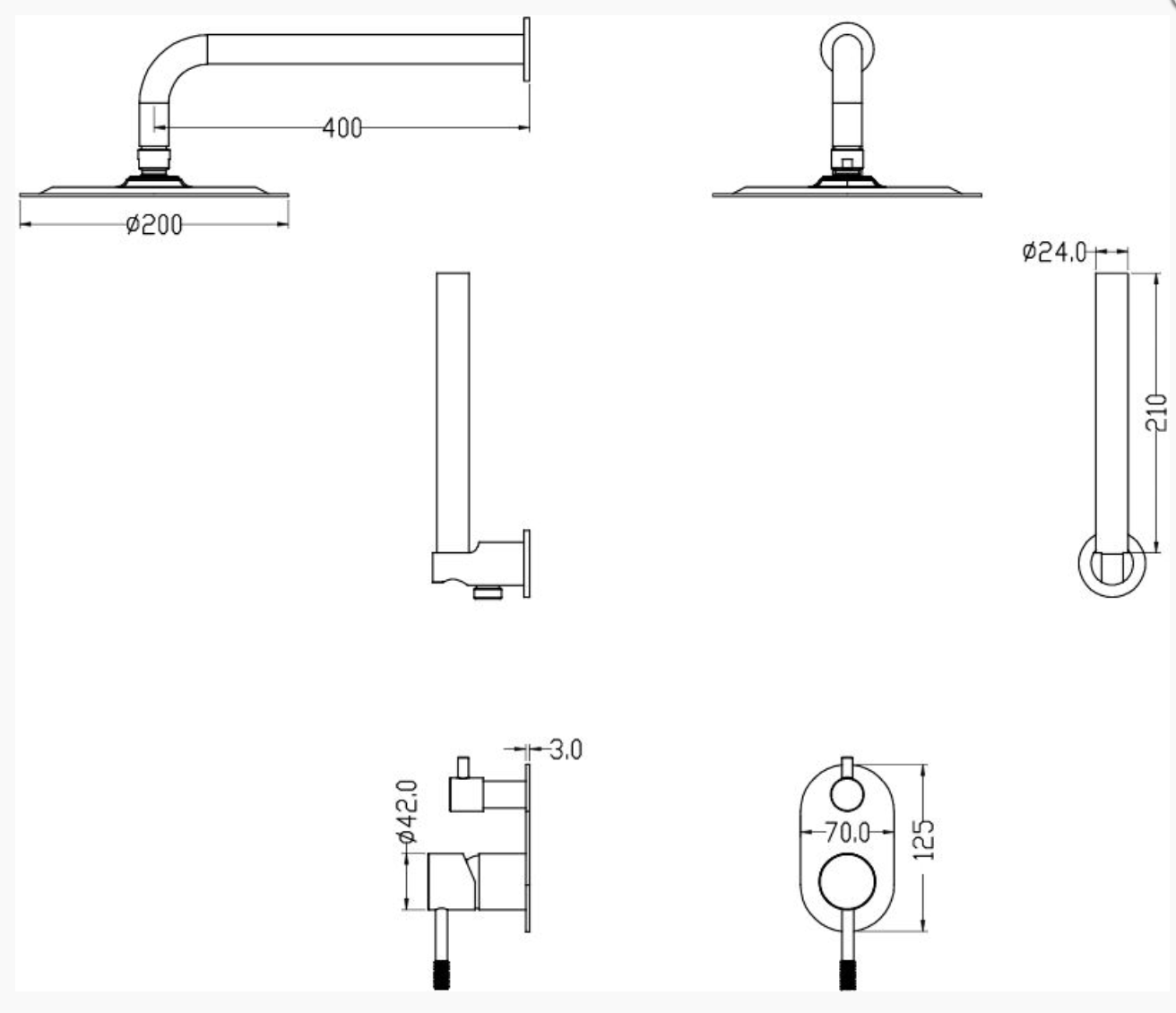 Размер верхнего душа: 200 мм.