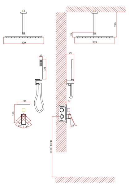 • Размер верхнего душа, см: