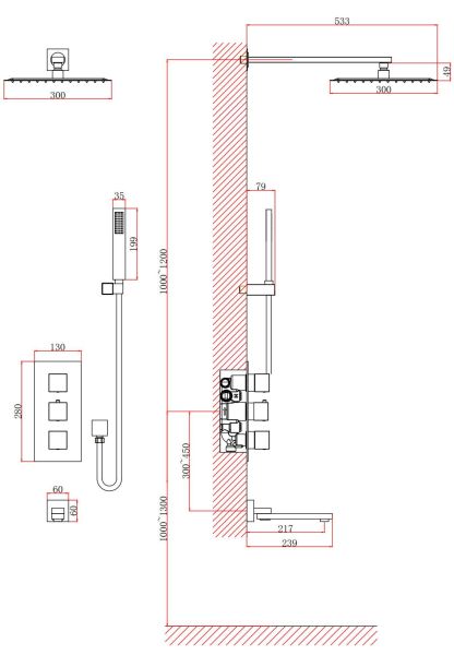 • Размер ручного душа, см: