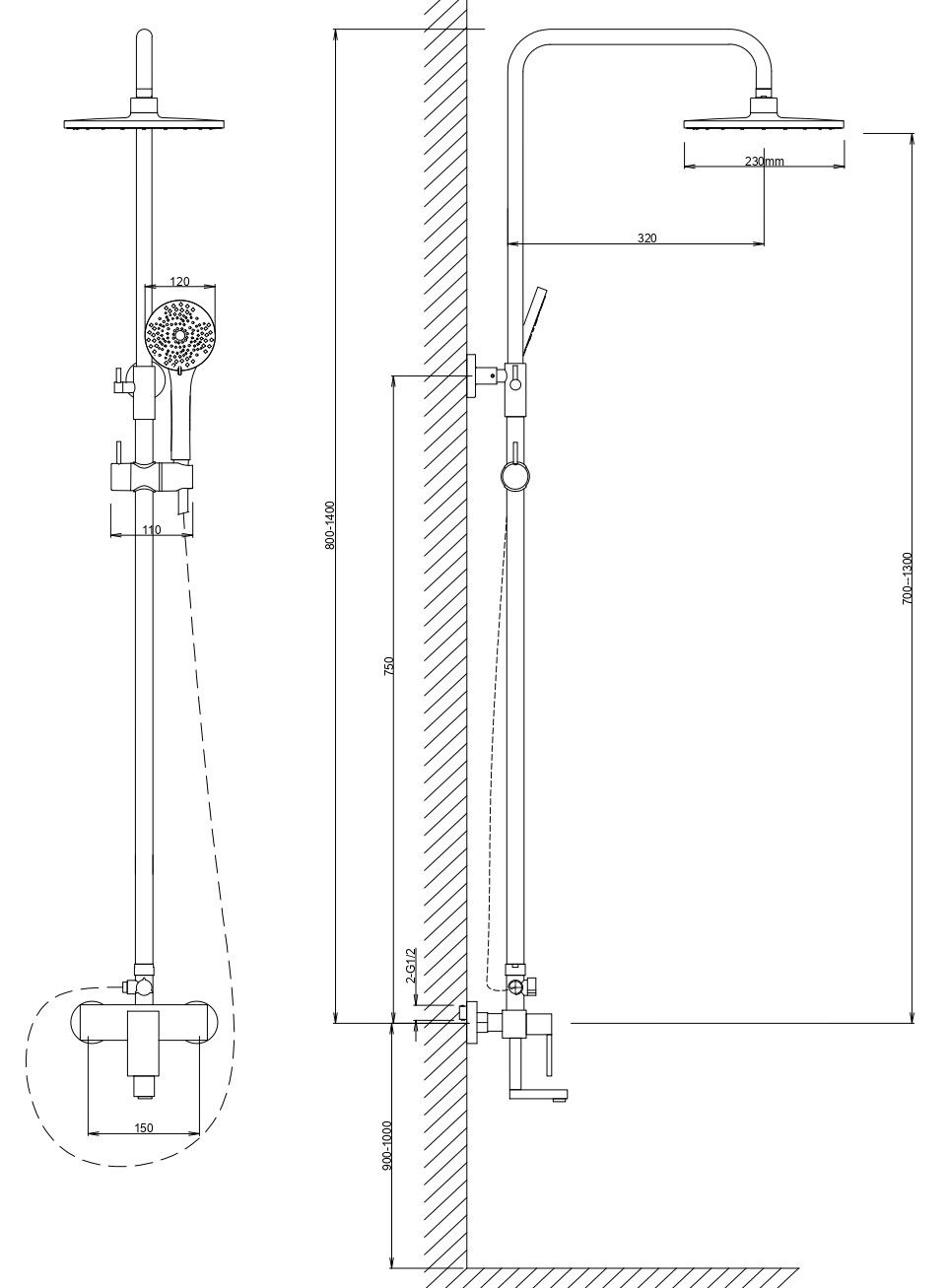 Размер ручного душа, см:12
