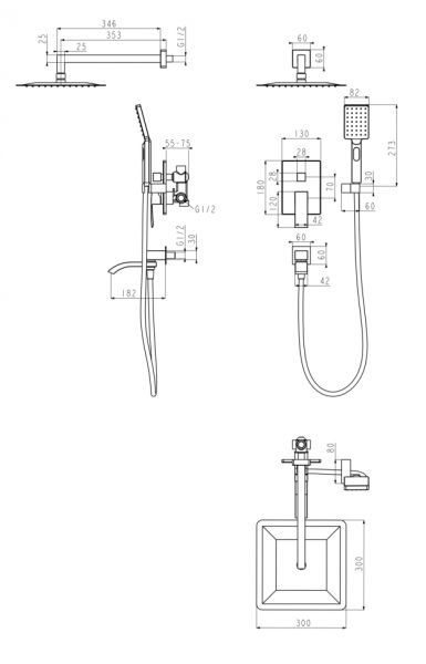 Душевая система скрытого монтажа Grocenberg GB5007BG Графит купить