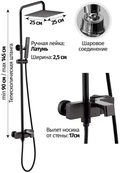 Душевая система Grocenberg GB7090 Черный матовый купить