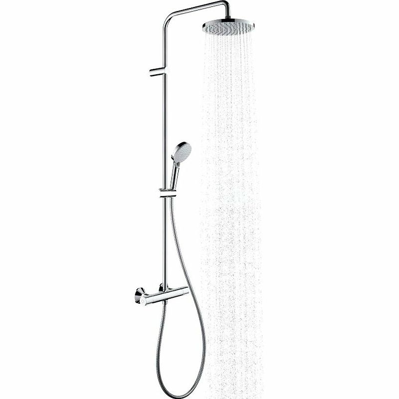 Душевая система Hansgrohe Vernis Blend Showerpipe 26276000 с термостатом.состоит из: верхний душ, ручной душ, термостат для душа, штанга для душа, держатель для душа
