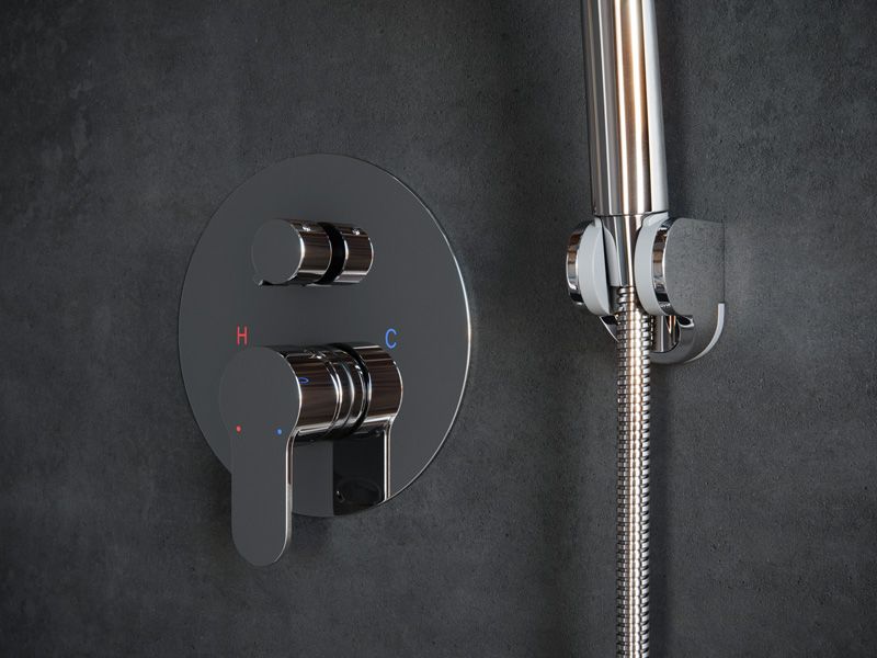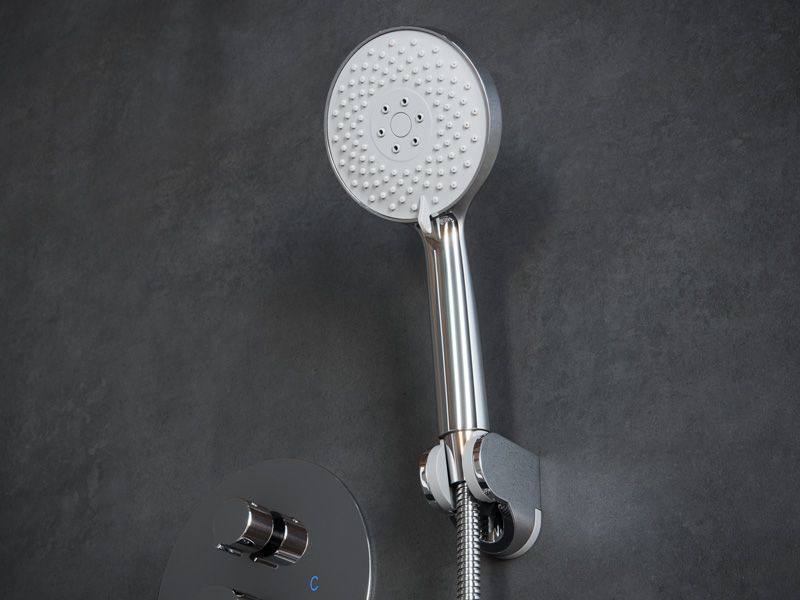 Смеситель скрытого монтажа, переключатель на 2 положения, верхний душ, ручной душ, душевой шланг, держатель лейки.