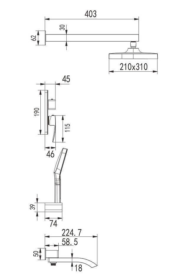 Душевая система встраиваемая Rose R1535H, черный.Монтаж: внутренний (скрытый).Стилистика дизайна: современный стиль.Управление: рычажное.Размер верхнего душа: 31x21.Форма верхнего душа: прямоугольная.