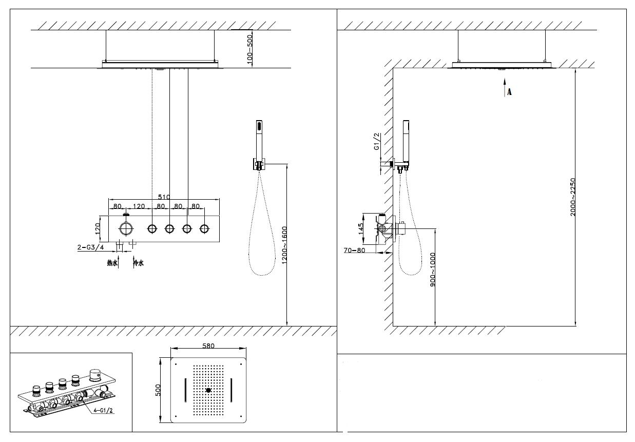 Душевая система с термостатом AltroBagno Metropoli 040401 NeOp черный матовый