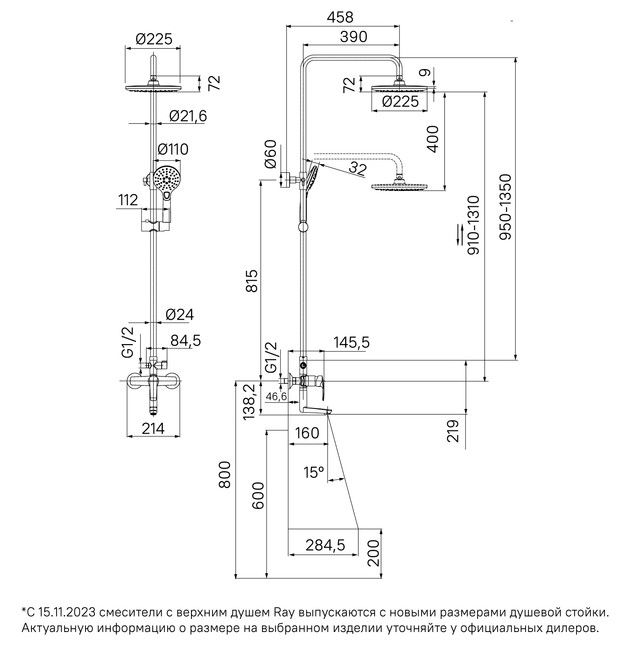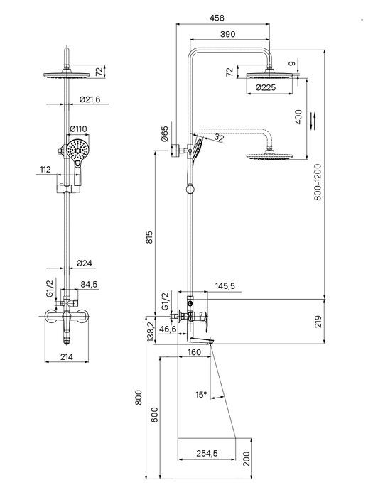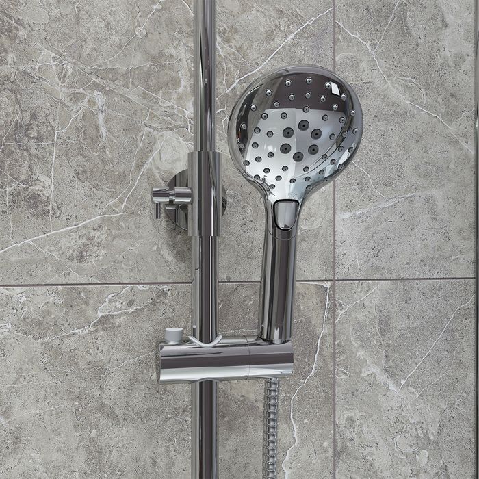 Регулируемая высота стойки (от 800 до 1200 мм) позволяет принимать душ с комфортом даже самым высоким.