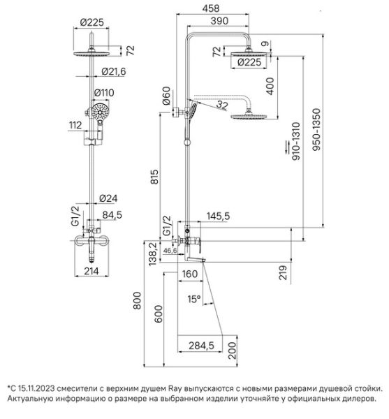 Регулируемая высота стойки (от 800 до 1200 мм) позволяет принимать душ с комфортом даже самым высоким.