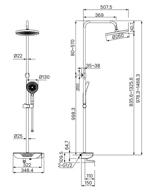• Размер верхнего душа, см: