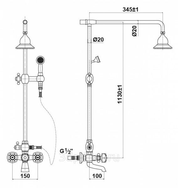 - Душевая система для ванной с круглой лейкой в стиле ретро