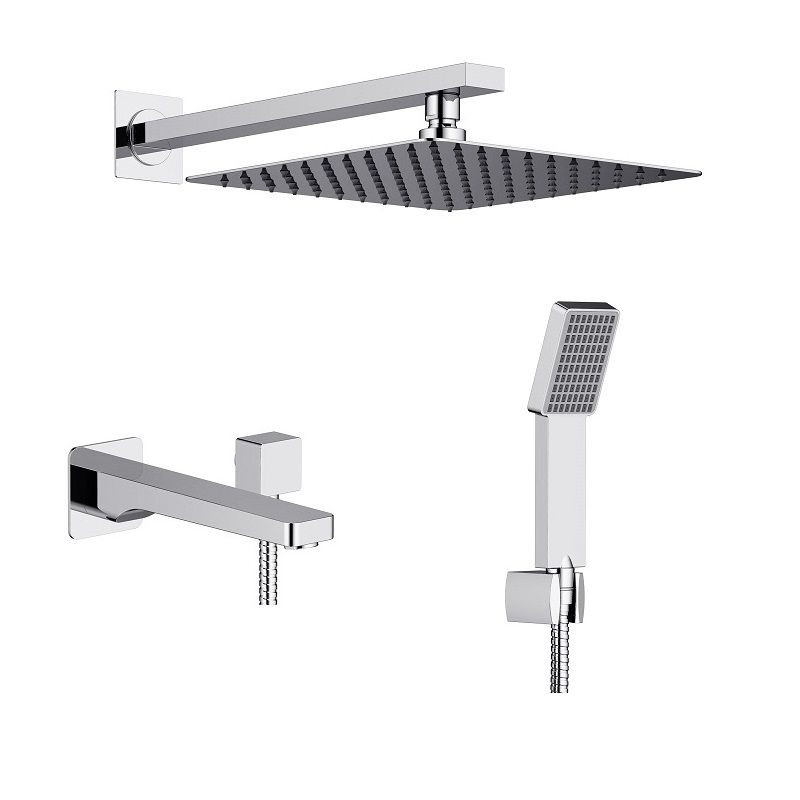 - Душевая система скрытого монтажа, с термостатом с квадратной лейкой (латунь) в стиле модерн