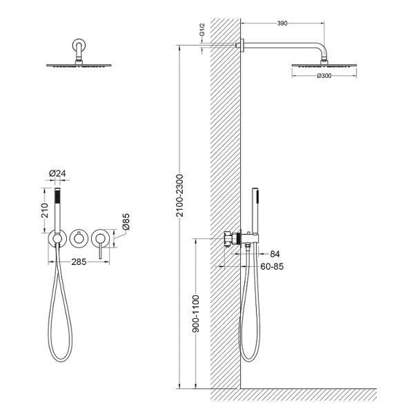 • Размер верхнего душа, см: