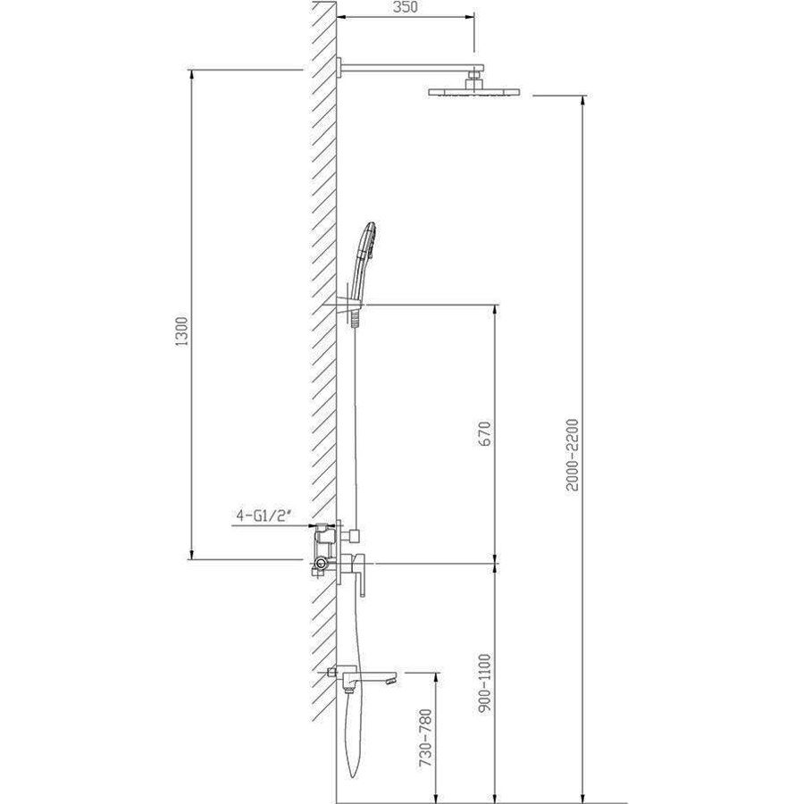 Душевая система скрытого монтажа с прямоугольной лейкой в стиле модернДушевая система сделана из латуни класса А