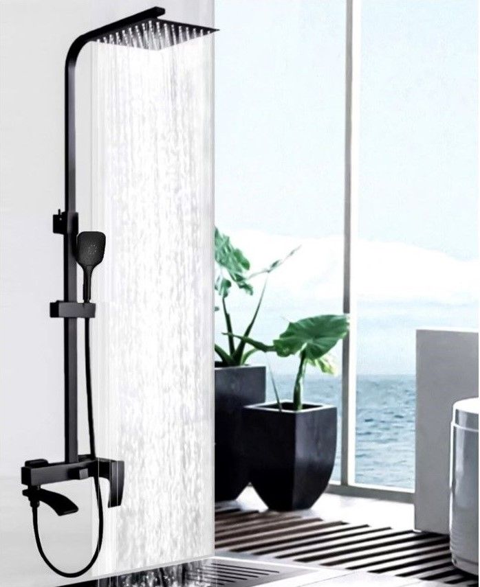 Современная душевая система серии выполнена из латуни в цвете черный матовый, имеет глянцевую поверхность, высота 1570 мм. Комплектуется тропическим душем 300х300 мм. Испанский картридж Ф35 мм. Душевая лейка с выдвижным держателем. Переключение с излива на тропический душ и душевую лейку производится поворотом излива, а для переключения с душа на тропический душ (при повернутом изливе) производится поворотным переключателем. В комплекте душевой шланг. Идеально подходит для установки в душевых углах и кабинах, а так же в ваннах. Гарантия на изделие 5 лет.Запорный клапан: Керамический картриджМатериал корпуса: ЛатуньПокрытие: ХромПроизводитель: Турция Гарантия: 5 лет
