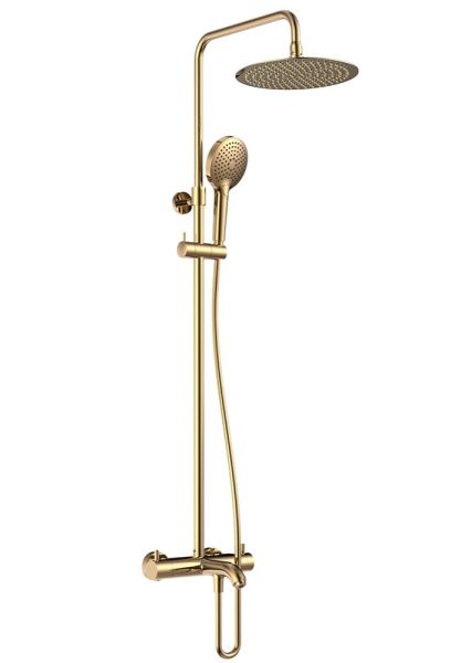 Душевая стойка AQUAme AQM8008BG с термостатом шлифованное золото купить