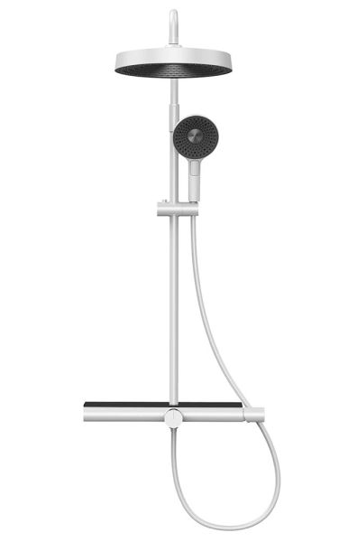 состоит из: верхний душ, ручной душ, смеситель для ванны, штанга для душа, держатель для душа; верхний душ 300 1jet; размер душевого диска: 300 мм, тип струи: Rain; душевая лейка 130 мм, 3 режима струи; съемный аэратор; шарнирное соединение: регулируемый угол верхнего душа;длина держателя для душа: 400 мм;держатель для ручного душа регулируемый по высоте; поворотный держатель для душа; вид монтажа: внешний монтаж; соединительная резьба G ½; межосевое подключение 150 мм ± 12 мм; телескопическая штанга; подъемная труба может быть укорочена по высоте 90-440 мм; полка из закаленного стекла; шланг 1500 мм; 2 года гарантии.