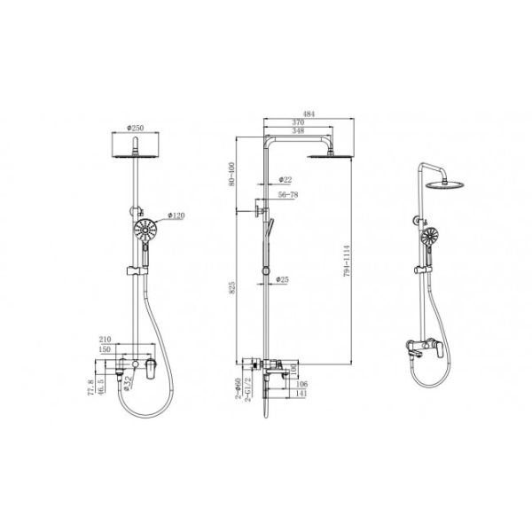Душевая стойка Aquatek Вега AQ2040BGM оружейная сталь Основные
