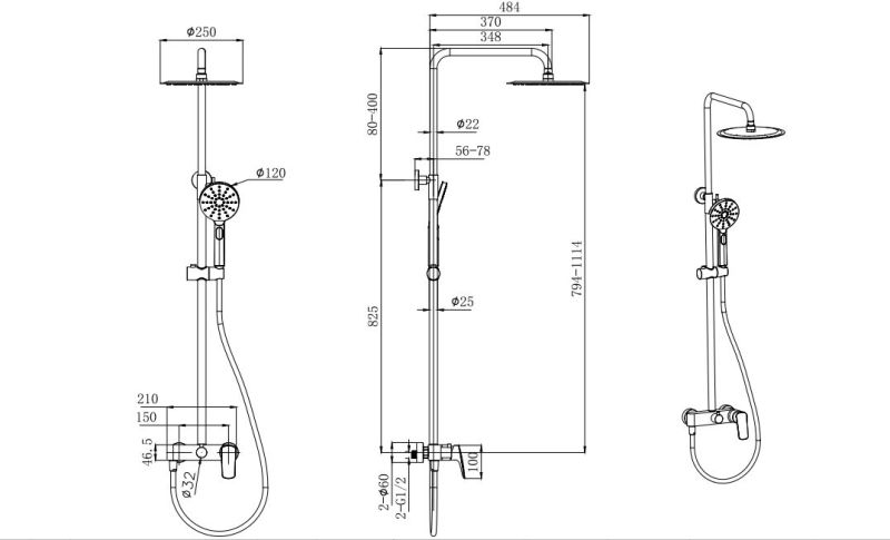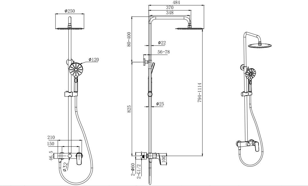 Душевая стойка Aquatek Вега AQ2060BGM оружейная сталь Код товара 585762