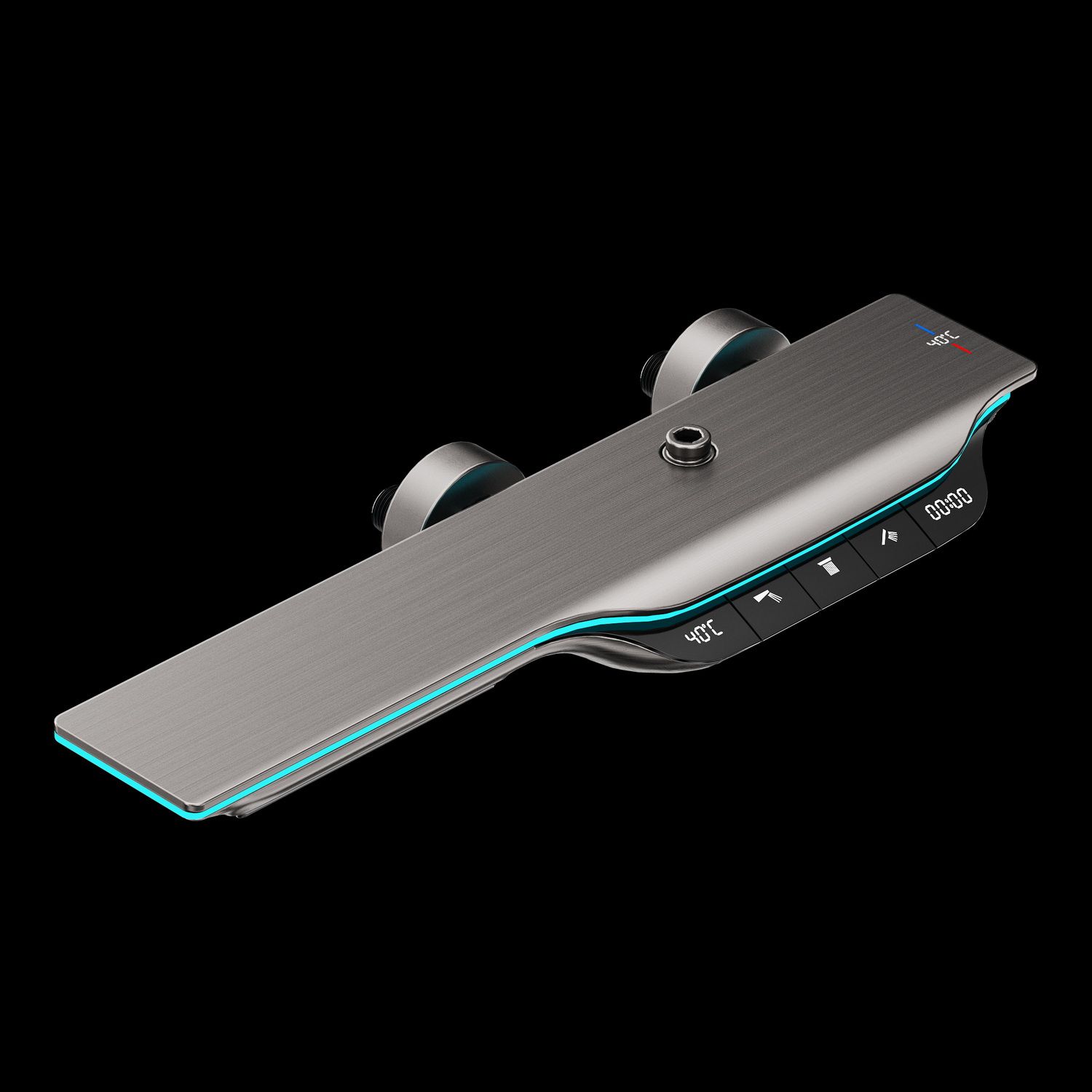 Душевая стойка датского производителя Black&White в черном цвете. Изделие изготовлено из сантехнической латуни, что говорит о высоком ресурсе и исключает возможность появления коррозии. На продукте установлен прогрессивный картридж с постоянным потоком воды и регулировкой температуры, показания которой выводится на табло, установленное в корпус ручки. Принцип работы – на изделие установлена машина постоянного тока, которая срабатывает от прохождения потоков воды.