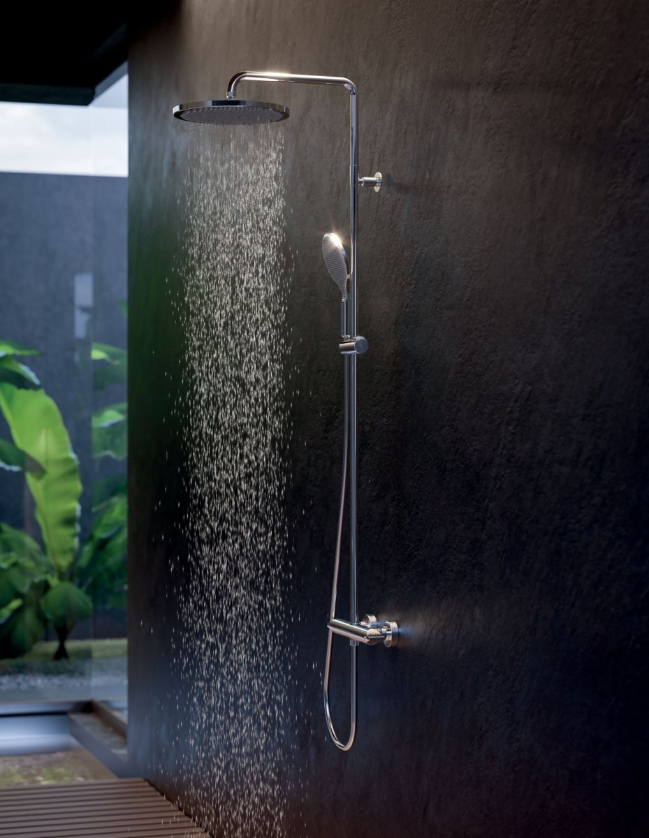 Bossini Apice душевая система: смеситель, стойка с верхним поворотным душем 28 см, с ручным душем, цвет хром.