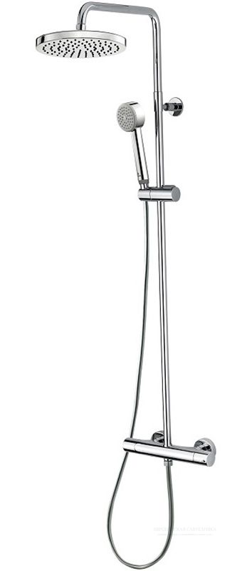 Bossini Elios душевая система: смеситель термостат, стойка с верхним поворотным душем 25 см, с ручным душем, цвет хром.