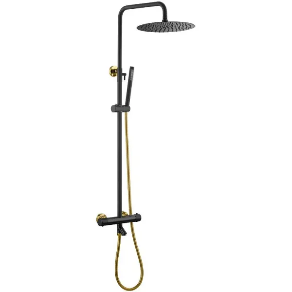 Душевая стойка c термостатом Boheme Uno 468-T-BG чёрный/золото