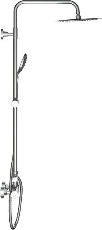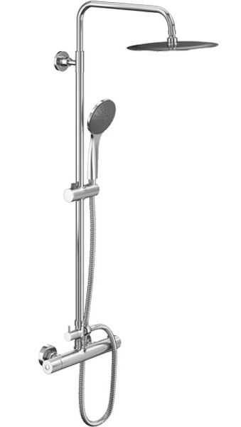 Душевая система в комплекте с термостатическим смесителем для душа; душевая лейка Ø120 мм 3-функциональная, ограничение потока 8 л/мин.; ультратонкий верхний душ Ø250 мм, ограничение потока 12 л/мин, нержавеющая сталь, шаровое соединение; душевая труба Ø25 мм для верхнего душа, ручное переключение, пластиковый слайдер, металлические крепления к стене; пластиковый шланг IdealFlex 1750 мм; смеситель для душа с двумя выходами, декоративные накладки для скрытого монтажа