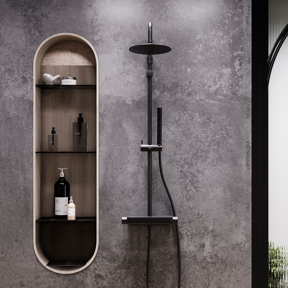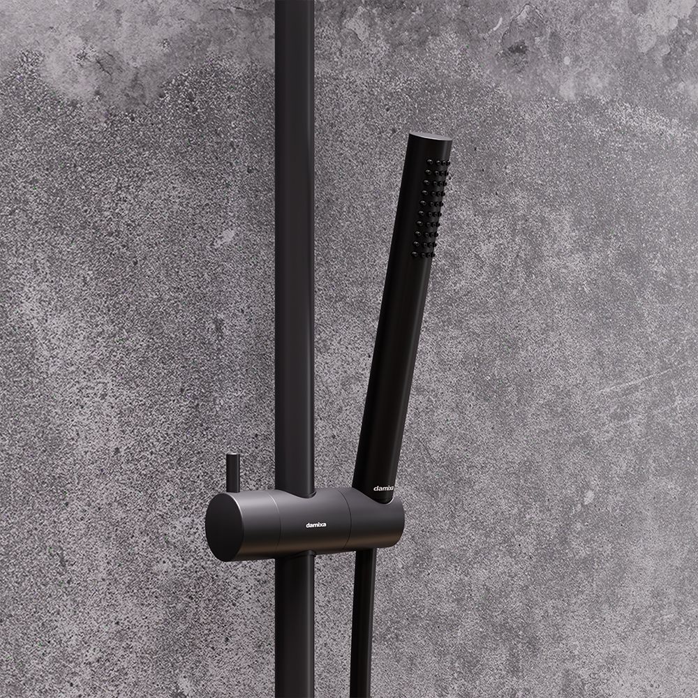 Душевая стойка Damixa Scandinavian Pure 936710000Душевые системы из коллекции Scandinavian Pure воплощение минималистичного датского дизайна и солидного скандинавского качества. Элегантные обтекаемые формы и матовое черное покрытие станут настоящим украшением современной ванной комнаты. Благодаря телескопической штанге с диапазоном регулировки 400 мм ежедневные процедуры будут одинаково комфортны для людей любого роста. Увеличенный диаметр верхнего душа с возможностью регулировки угла наклона и ручная лейка в трендовой форме стика подарят вам полный спектр ощущений - помогут взбодриться утром и расслабится вечером. Переключайте потоки воды между ручной и тропической лейками нажатием всего одной кнопки. Инновационное PVD-покрытие гарантирует чрезвычайную прочность душевой системы. Матово-черная поверхность не выцветает с годами и устойчива к механическим повреждениям загрязнениям и отпечаткам пальцев.