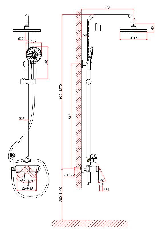 Душевая стойка DQ Bayern.F?rth DA1524705B18 с гигиеническим душем чёрный матовый